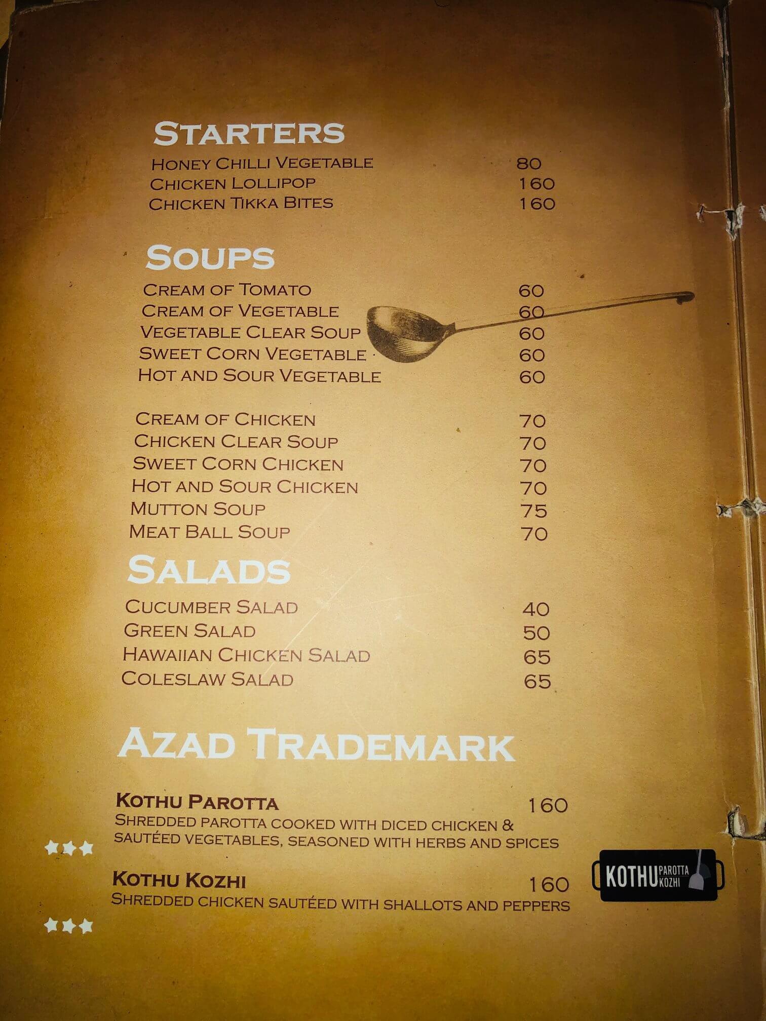 പിന്നെ ആസാദിൻ്റെ രുചിപ്പെരുമ കൊല്ലത്തും, നാഗർകോവിലിലുമെല്ലാം വ്യാപിച്ചു. തലസ്ഥാനത്തു പല സ്ഥലങ്ങളായി നമുക്ക് ഇപ്പോഴും ആതിഥ്യമരുളി കൊണ്ട് ഇരിക്കുന്നു.
